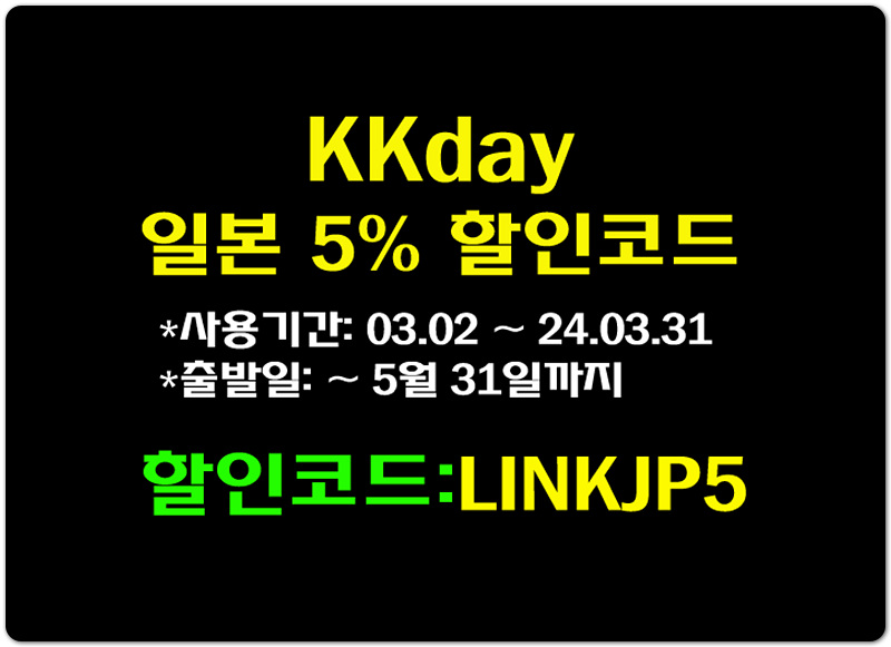 안녕하세요? 오늘은 일본 여행 시 이심(eSIM)을 비롯 유명 관광지 1일 투어, 입장권, 교통패스 등을 5% 할인해서 구매할 수 있는 케이케이데이 할인쿠폰을 안내해 드리도록 하겠습니다.